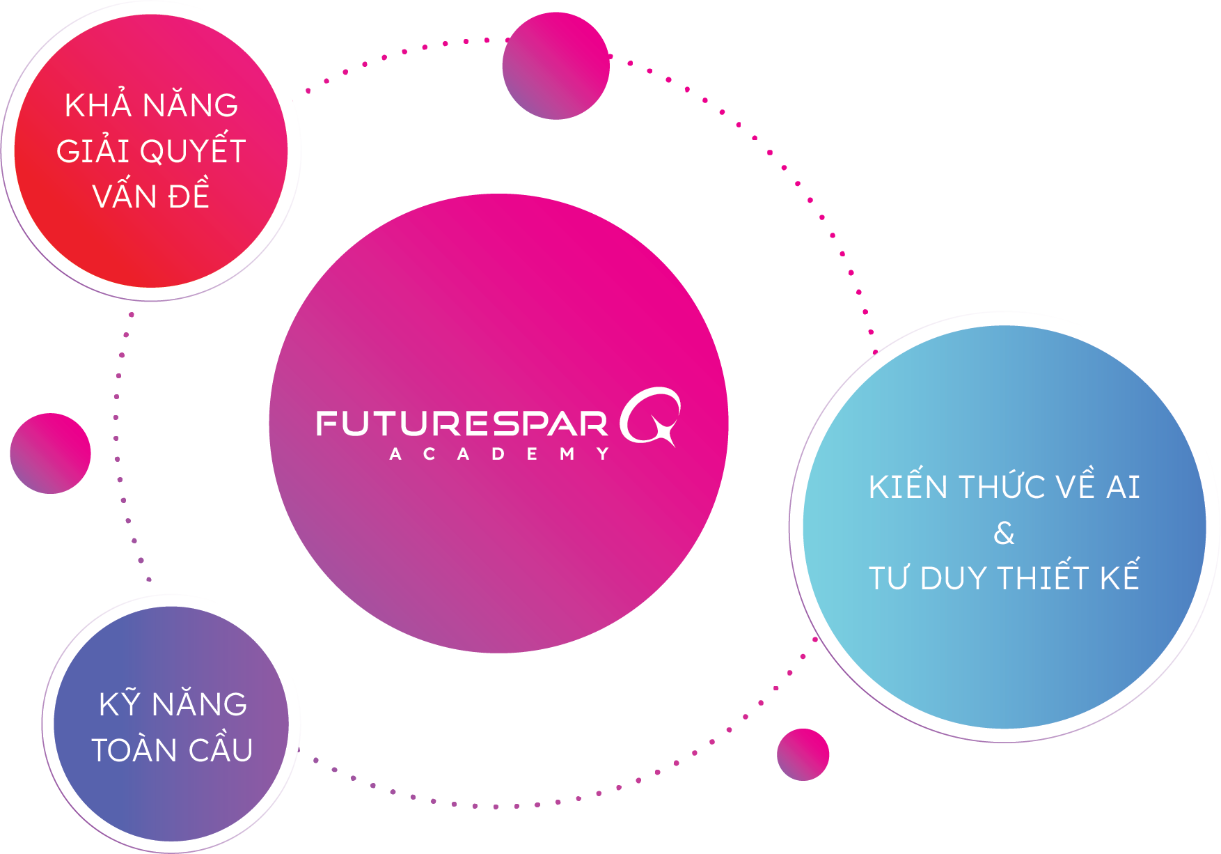 FutureSparQ Academy là một hệ sinh thái học tập dành cho thế hệ mới, chúng tôi trang bị cho trẻ những kỹ năng thiết yếu cho tương lai thông qua ba chương trình cốt lõi: FutureMath, FutureCitizen và FutureAI — được xây dựng cùng các đơn vị giáo dục tinh hoa từ Singapore, Hàn Quốc và Hoa Kỳ.